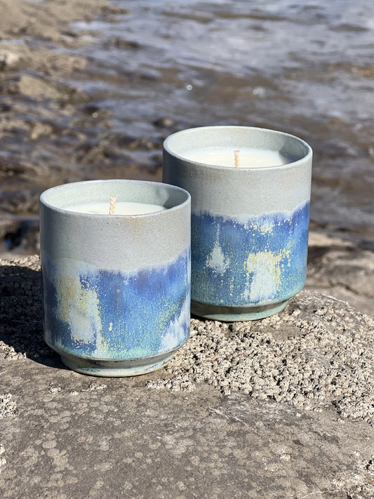 Our first collection of all natural, luxury candles inspired by the places close to our hearts in South Wales, lush greenery, glorious beaches and breaking waves. Our beautiful ceramic pots are handmade and glazed by us and our candles are made using 100% natural soy wax and essential oils which have the added benefit of a wellbeing boost!